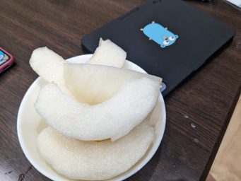 帰って先日買った「甘太」梨切って喰う。デカいし旨すぎる。旬の梨が果物で一番旨いですね。