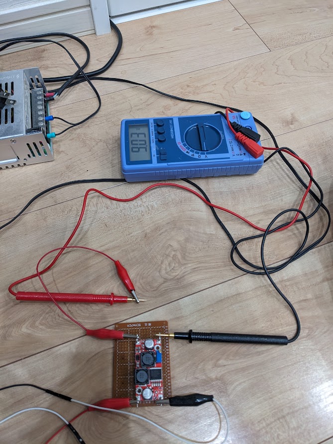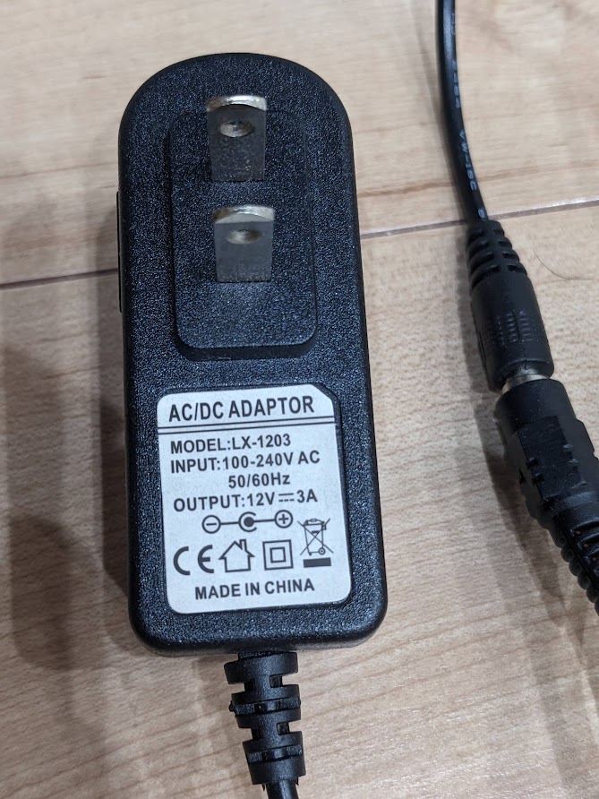 9VのACアダプタが必須なんですが家中探して余ってるやつ無かった。12Vならあったので降圧させて自作するしかない。なぜか変圧モジュールが余ってたので少々リッチですがこれ使います。9V出力だけ、とりあえず。
