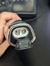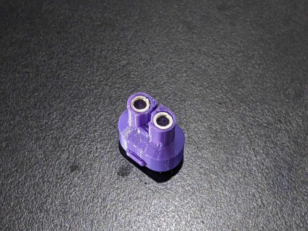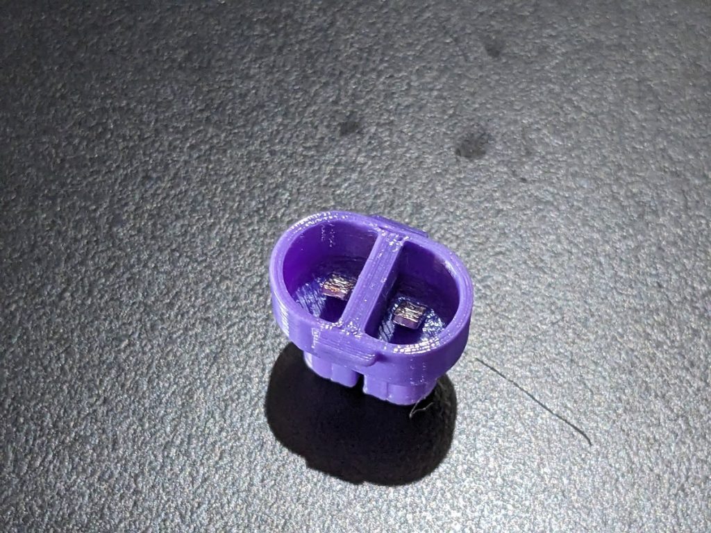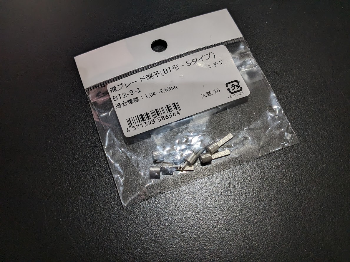 こんな感じ。ターミナルにはロイヤルホームセンターで買った適当な「BT2-9-1」とかいう裸ブレード端子使ったけど、ちょっとキツいくらいやけどピッタリハマッた。