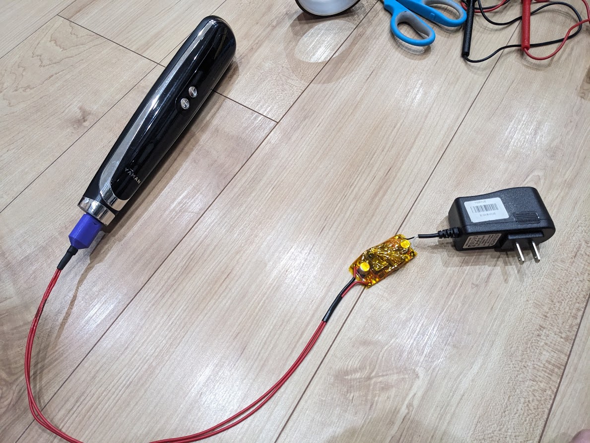 9V降圧したACアダプターとかとはんだづけしたりして完成。
