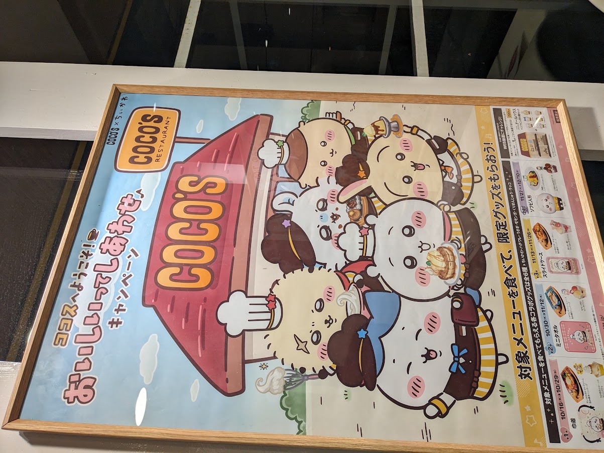 残業でハミレス行くってどんな会社やねん。ブラック会社へようこそ。6人もおっさんが車に乗ると熱気で窓が曇る。もう一台車もいて計10人でちいかわグッズ全回収を狙います。