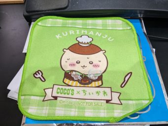 集まったちいかわグッズは主催者のちいかわの大ファンの方に託して無事に全部コンプ出来た模様。よかったですね。余った分は開封して「くりまんじゅう」のハンケチをいただいた。ラインナップ中だとこの「くりまんじゅう」と「うさぎ」くらいしかほしいのが無い。