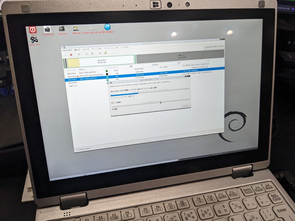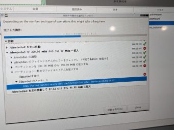 なんかEFIパーティションの拡張のステップだけ失敗しましたがあとで1ステップずつ実行してやればいけた。