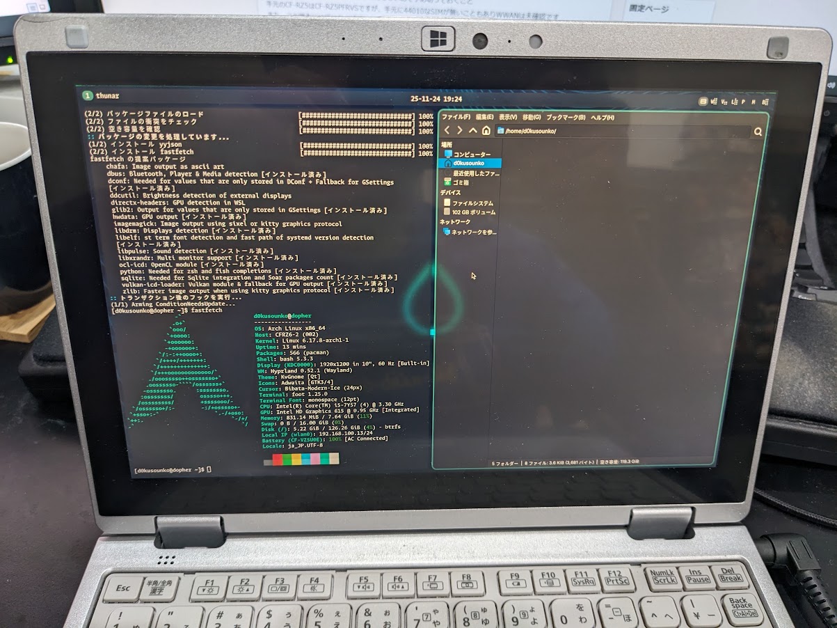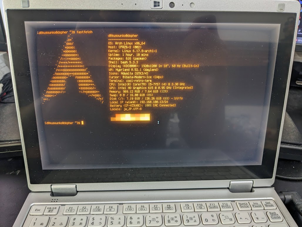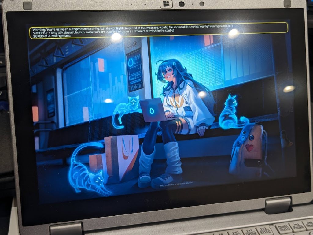 さらに進めてひとまずHyprlandのHyprちゃん表示まで確認。感動。