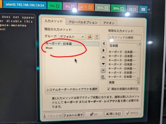 「fcitxの設定でjp106キーボードとmozcを選択しておく」とあるので、ターミナルでfcitx5-configtoolを実行。ターミナルは Win+Q で出てくる。閉じるにはWin+C。