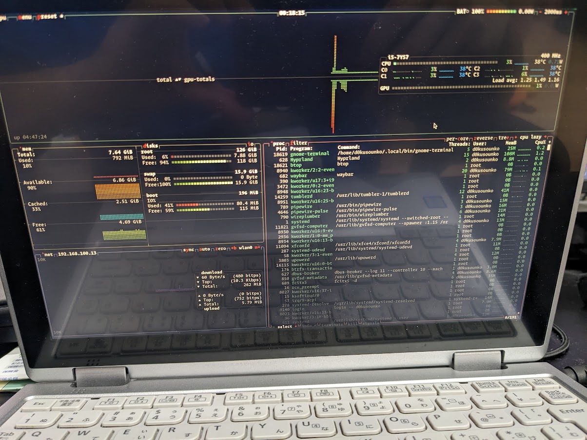 画面がいつのまにか暖色系になってる気がする。ちょっとサーベイした感じたぶんhyprsunset周りの設定がdotfilesに入ってそうな気がする。特に直したいわけではないけど調べとく。