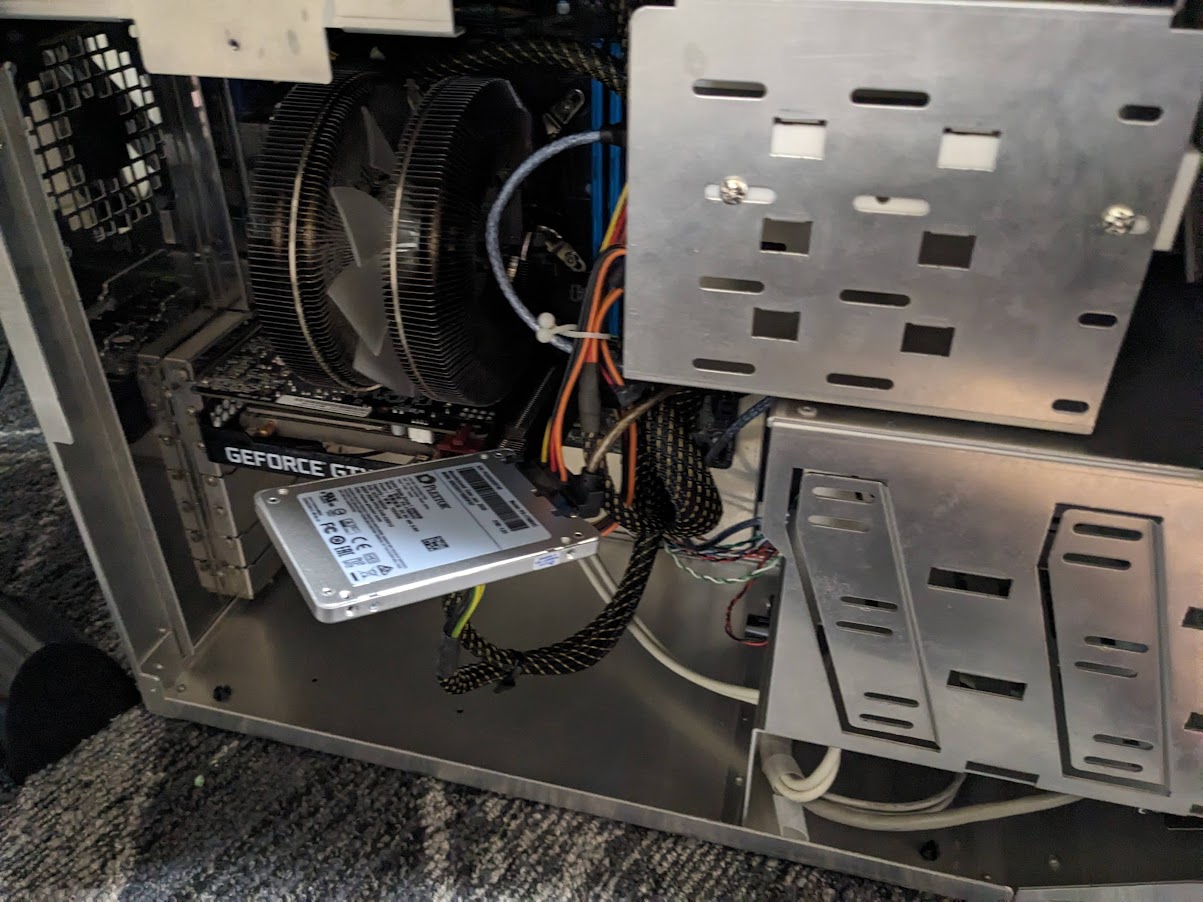 VRドラムマニア機メンテナンス、家に適当に転がってたSSDの様子がおかしいので懸念点解消のために交換。同じSATA接続の1TB。適当にヤフオクで中古購入。