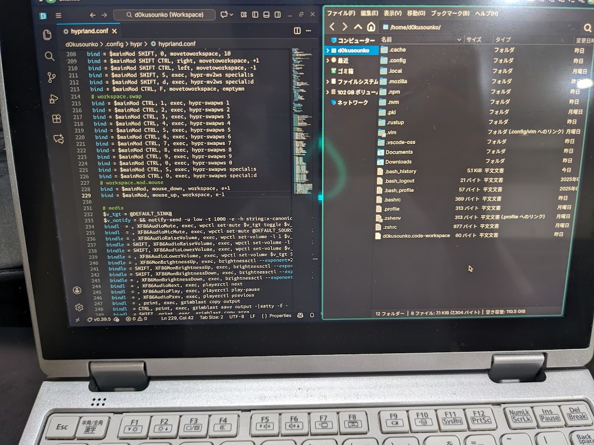 なんかダルい。Let’s noteとHyprlandのことしか考えられないので本日の仕事はサボりです。エリート4連休突入。