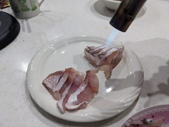 皮付きの炙りが好きなのでやってみます。鯛の皮はしぶといので結構強めに炙っておかないとあとで後悔します。気をつけましょう。