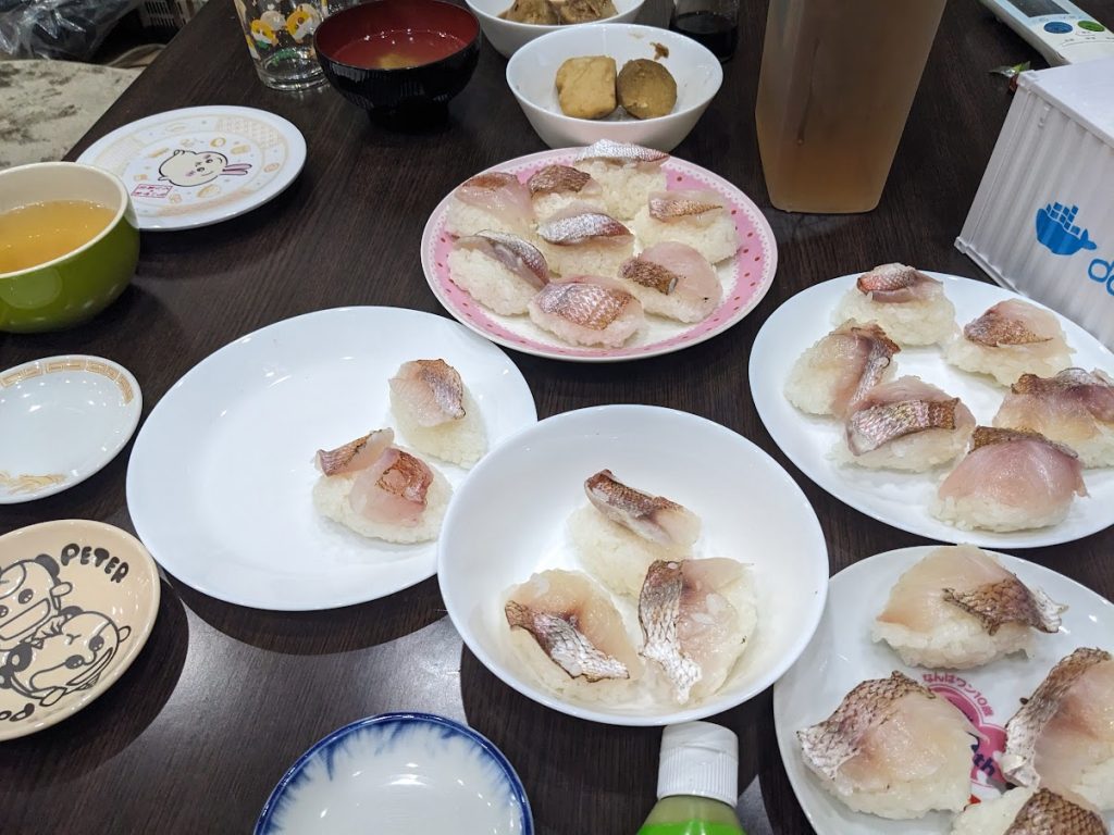 昆布締めして熟成させた連子鯛とチダイを使って寿司をやっていきましょう。といっても嫁はんが作るだけです。そういや「女性が寿司を握るのはダメですか?」ってあったけど何だったんでしょうね。勝手にやればええんちゃうか。