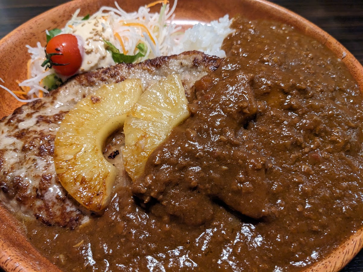 パインカレーディッシュが好きすぎるのですがこれにガリバーバーグを乗せるとなんと約2400円です。皆さんは冷静になってから注文しましょうね。福利厚生で10%オフですがそれでも正気では注文できない値段です。旨いからええけど。