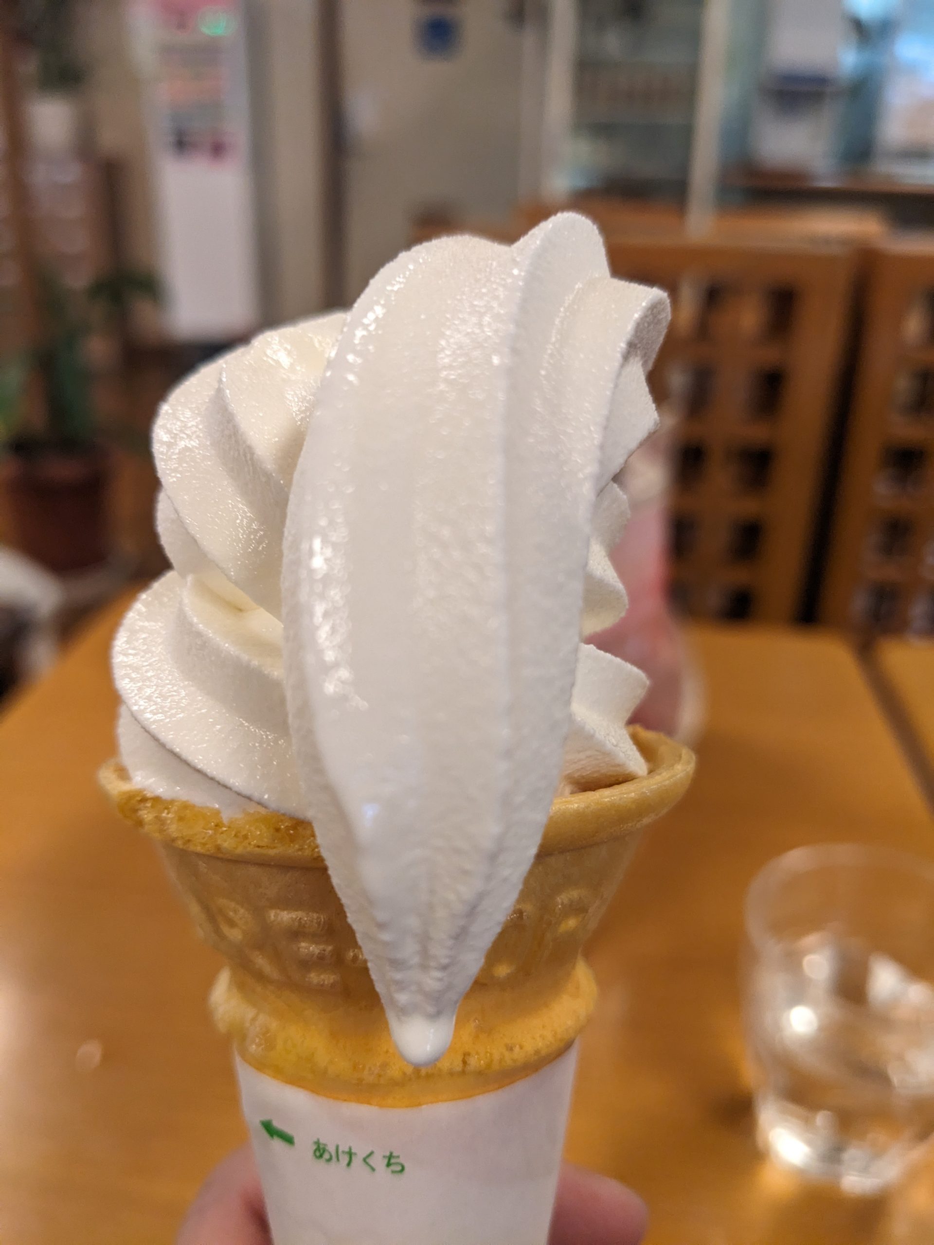 久々に水曜日のルーティーン、ソフトクリームの日を敢行。もちろんスタンザで。マニュアル運転した後のソフトは256倍旨い。いや、120円から130円に値上がったからかも。値上げの緊張からか「ソフトクリーム達人の店」でも最後の詰めで失敗してしまう。量が多くなってありがとうございます。