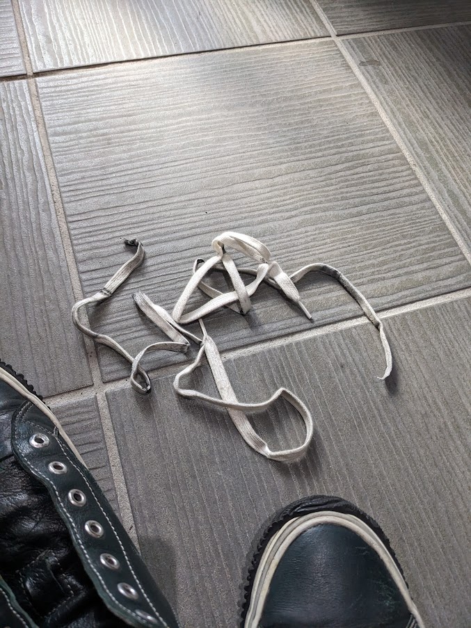 ■ 今日の1日1捨:ちぎれた靴紐、今年最後の可燃ごみ
