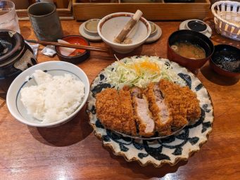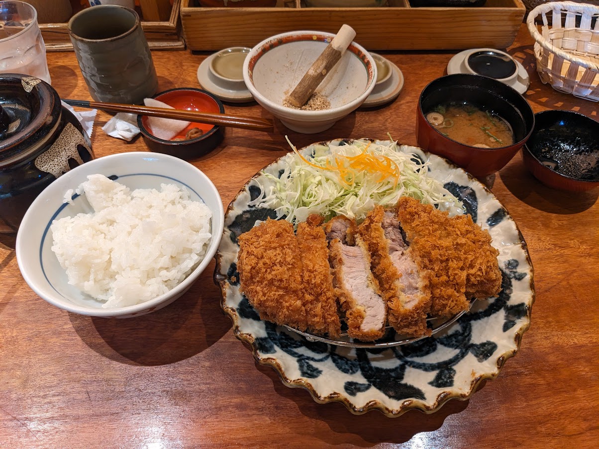 ノーマークだったのですが結構旨くてリピ機運ありです。ちなみに頼んだのは「極上とろ肉かつ180g」とかだったはず。180gで十分な量。コメも炊き込みご飯含む3種類選べて無限。味噌汁もおかわり無限でなめこが選べる。