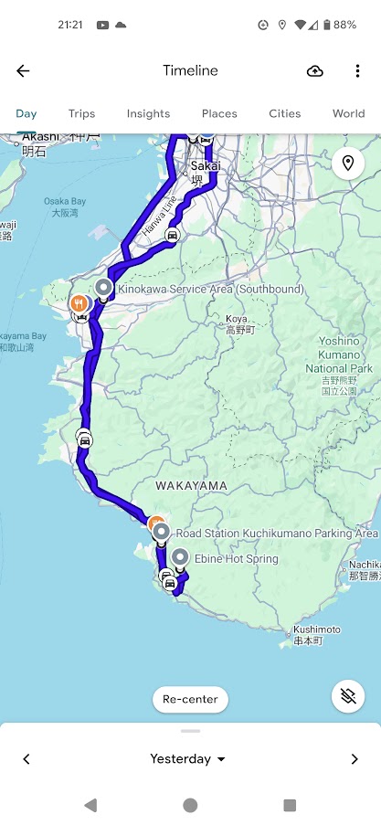 本日の移動ルート。Google Mapのタイムラインクラウドバックアップ廃止はGoogleが掲げた「クラウドによる将来の再改革」に対する冒涜なので本当にEvilです。