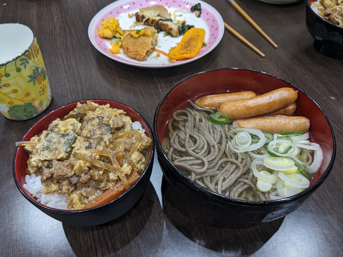 エリート飯。すき焼きの残り丼と年越しそば定食。どっちも旨すぎる。