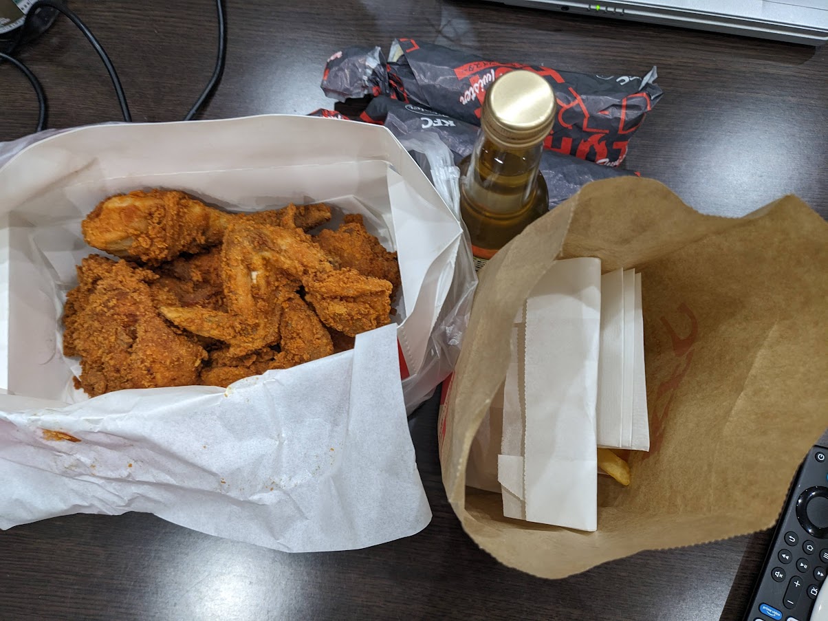 嫁はん希望でKFCでレッドホットチキン。Linuxカーネル。