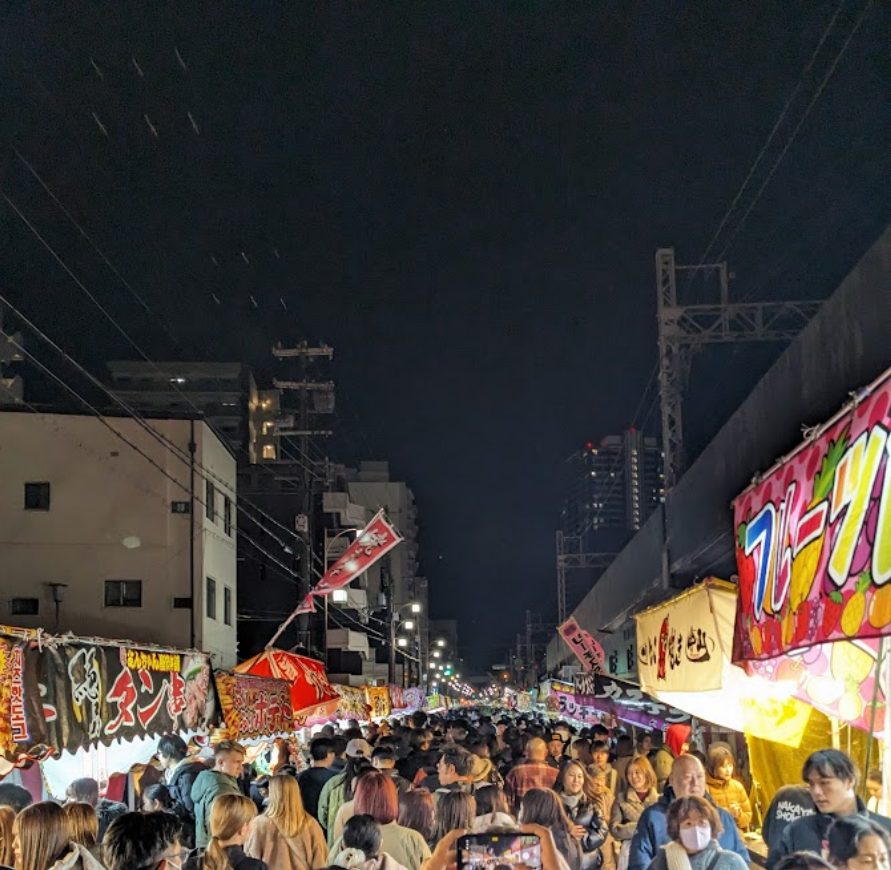 屋台ゾーン様子。インフルエンザの機運高まってきた…。