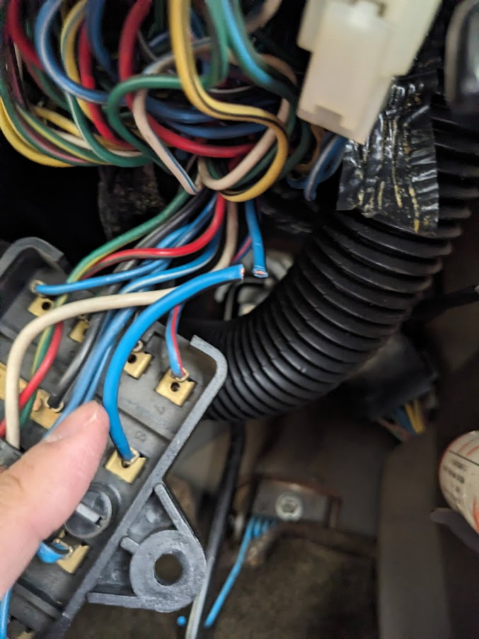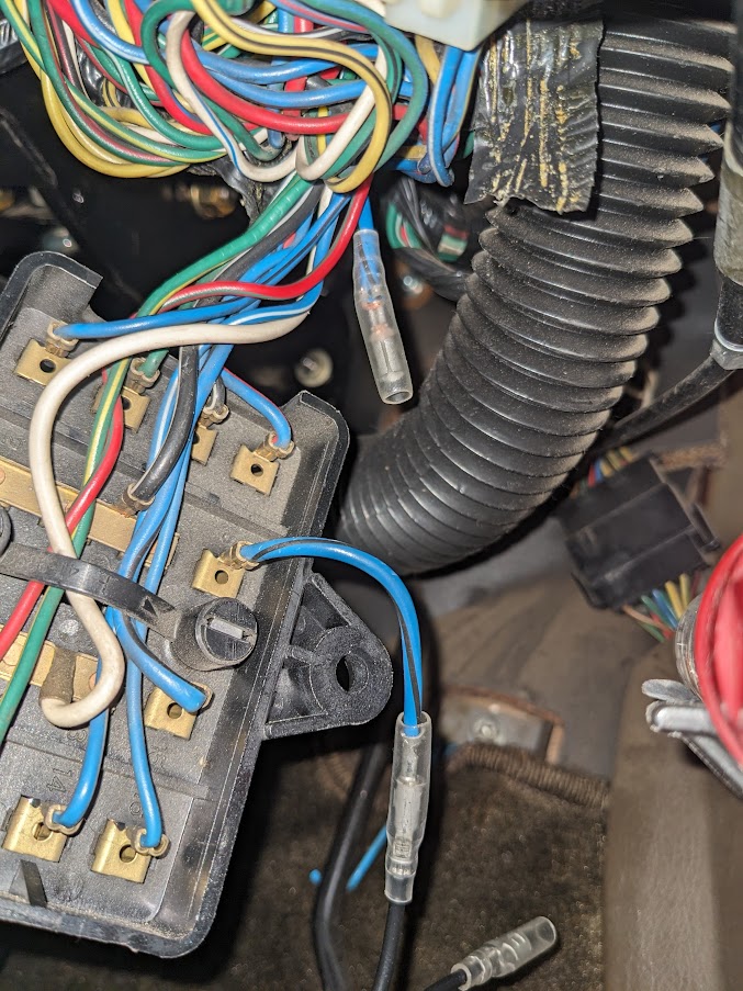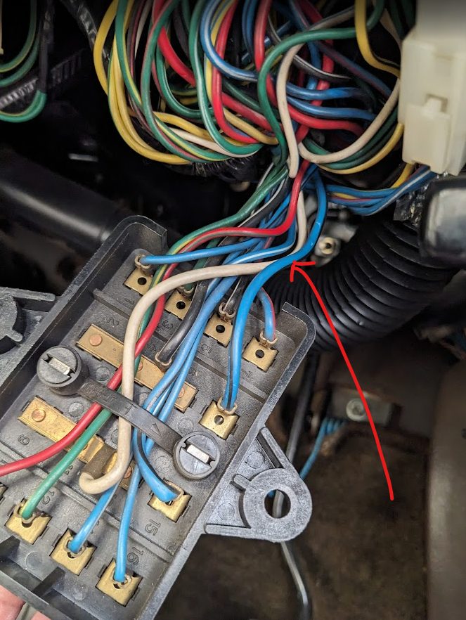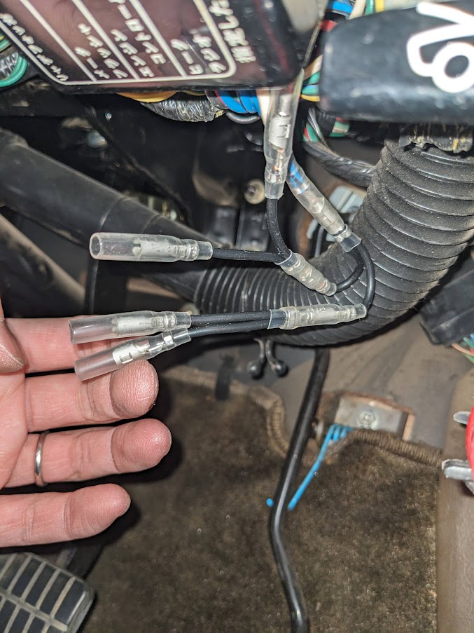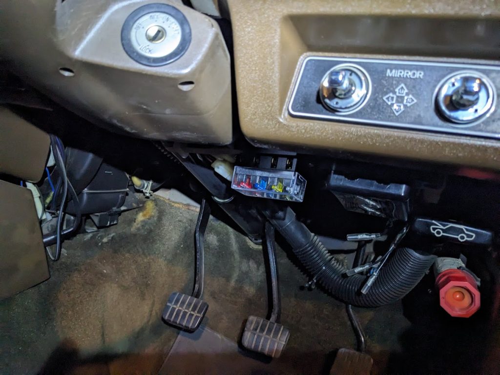 前回のサーベイの結果、ガラス管ヒューズボックスをブレードヒューズボックスへの全置き換えは観念したので、ACC 12Vが来ているこのコードをぶった切ってバイパスします。