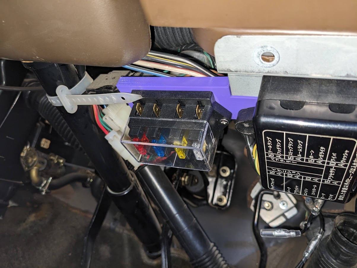 適当にペタグーでヒューズボックス用のマウンタ作って装備完了。