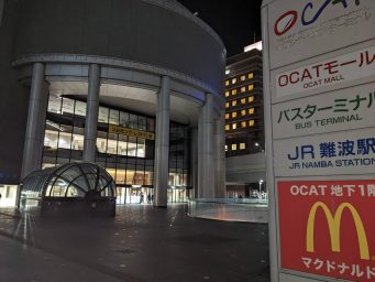 難波OCAT。普通のシティバスはどれに乗れば良いかさっぱり分からないのですが夜行バスはバスターミナルに何時発の何々行きの何々バスは何番バスって書いてるので一発で分かりやすくて良いです。