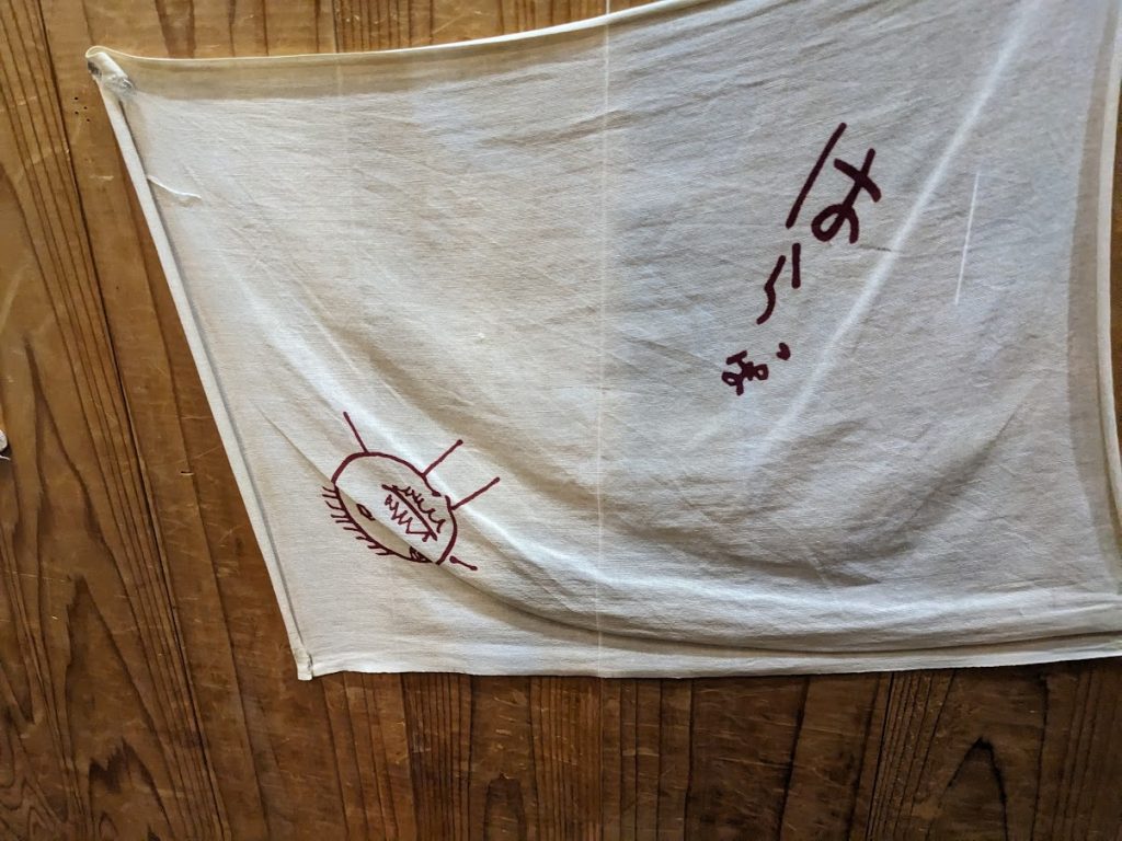 酒屋にあった謎のブヒ娘てぬぐいよかった。買っといた。