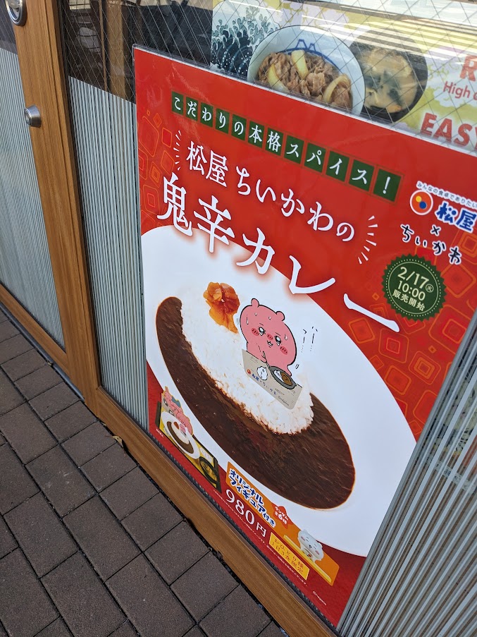 本日は「ちいかわ部」活動日のため昼飯は職場から一番近い松屋まで徒歩15分かけて向かいます。