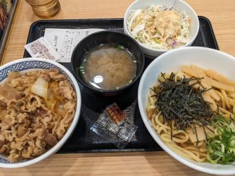 今まで吉野家の麺類は全部微妙だったのですが今回の油そばは麺から作り直してる感じがあるそこそこ旨い。味変用?のお酢は個人的に微妙。いらんかも。もっと辛い麺やと合うんかな?