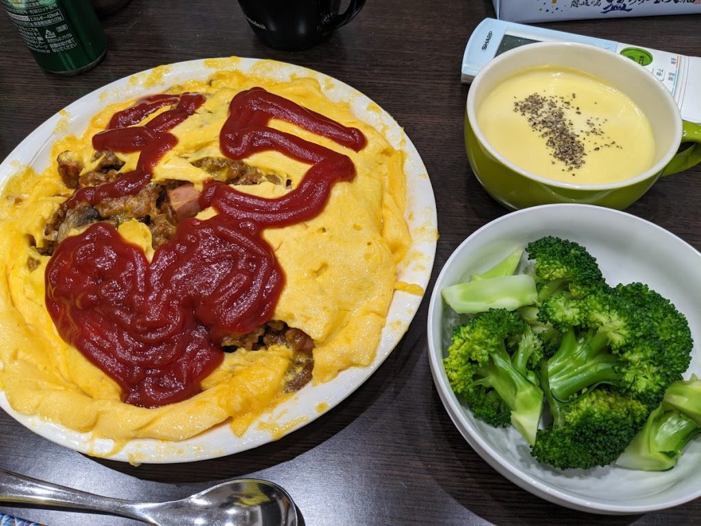 エリート飯。非常に個性的なオムライスですが平日にワシが無理言ってリクエストしてるのです。