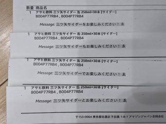 三ツ矢サイダー定期お得便。そういやメッセージカード無いって言ってしまいましたがありましたわ…。