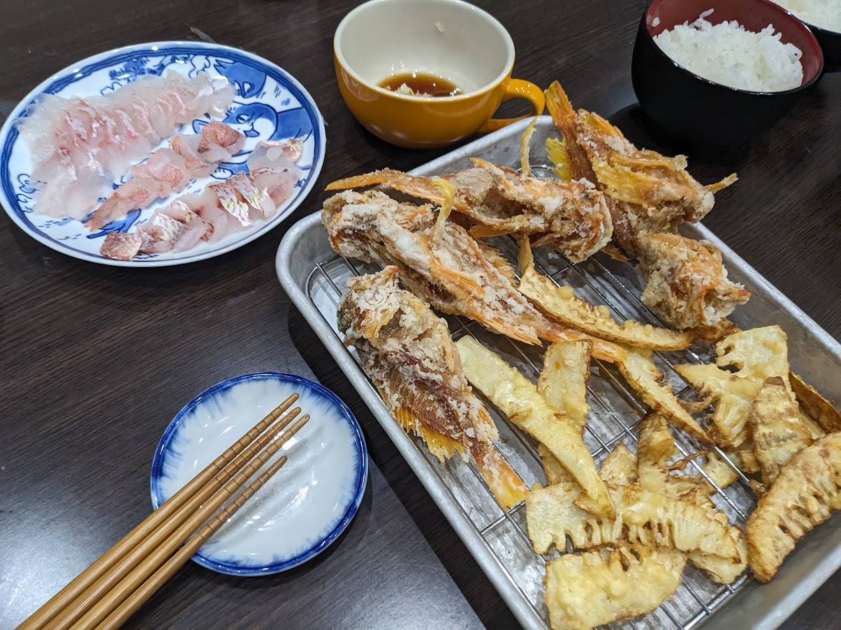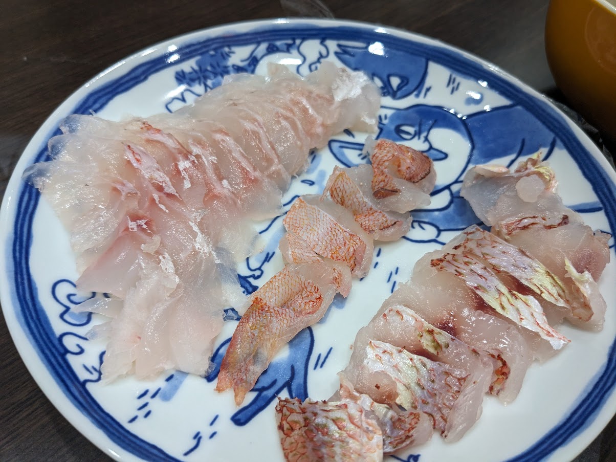 エリート飯。チカメキントキの刺身、間違いなく連子鯛よりも旨味がある。