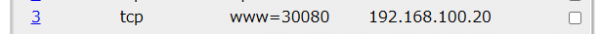 RTX810 で外部 80 が 192.168.100.20:30080 へ転送されている